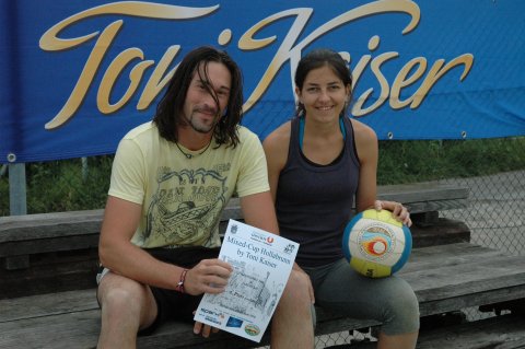 Pezi und Hannes wurden durch die wildcard auf Rang sechs in der Setzliste platziert und trafen gleich in der ersten Runde auf Doris und Georg. Pezi und Hannes fanden langsam ins Spiel und gewannen den ersten Satz knapp mit 15:13 und den zweiten Satz eindeutig mit 15:7. Die zweite Runde verloren die beiden aber unglücklich knapp mit 13:15 und 14:16 gegen die letztendlich Drittplatzierten. Im Looserast erging es den beiden Hollabrunnern nicht besser und verloren gegen Magdalena Geiger und Christoph Schwarz (Platz zwei im Turnier) knapp mit 13:15 und 14:16, also wurde es der 5. Platz im Toni-Kaiser Mixedturnier.